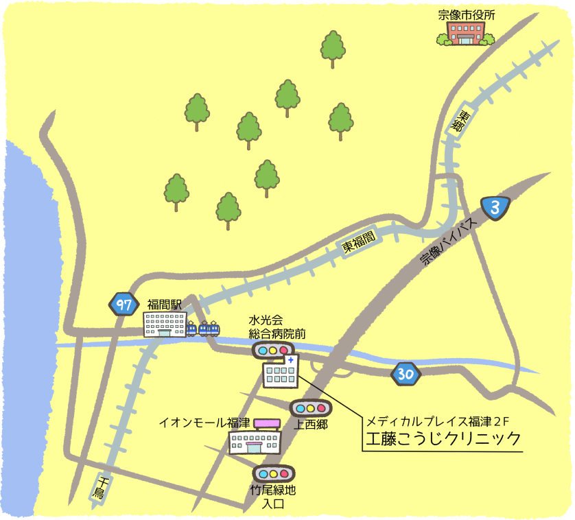 宗像市にお住まいの方も、当院で診療を受けることができます。